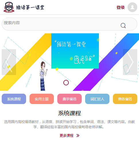 緬語第一堂課在線教育平臺開發(fā)案例